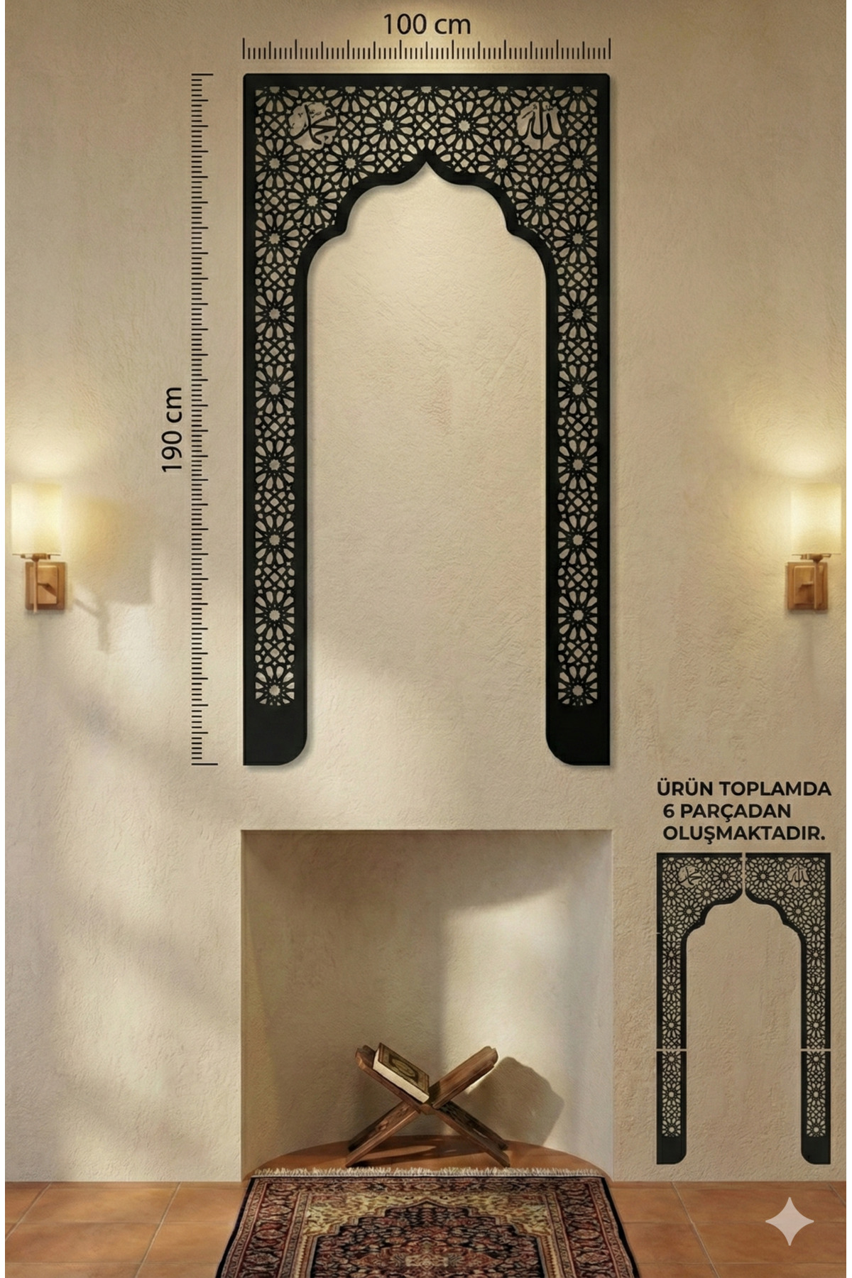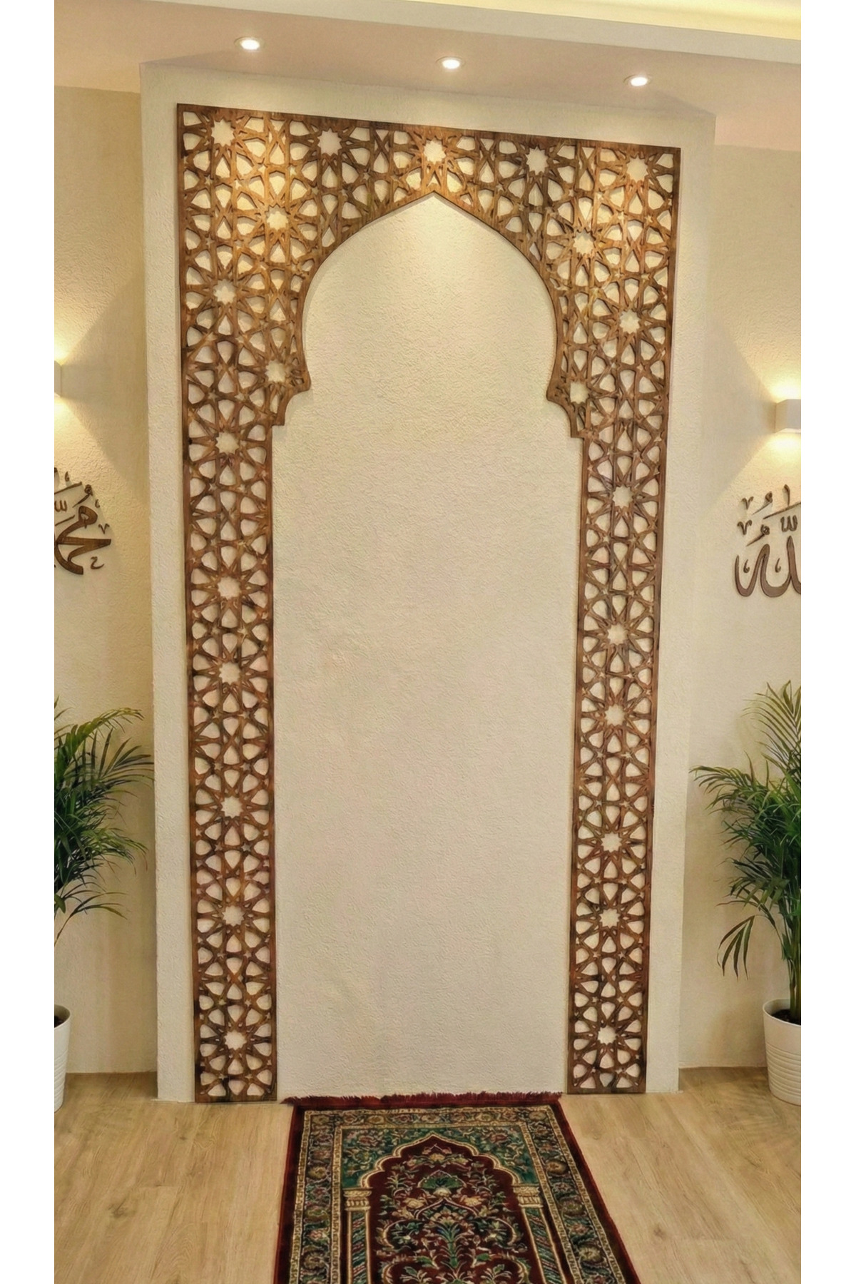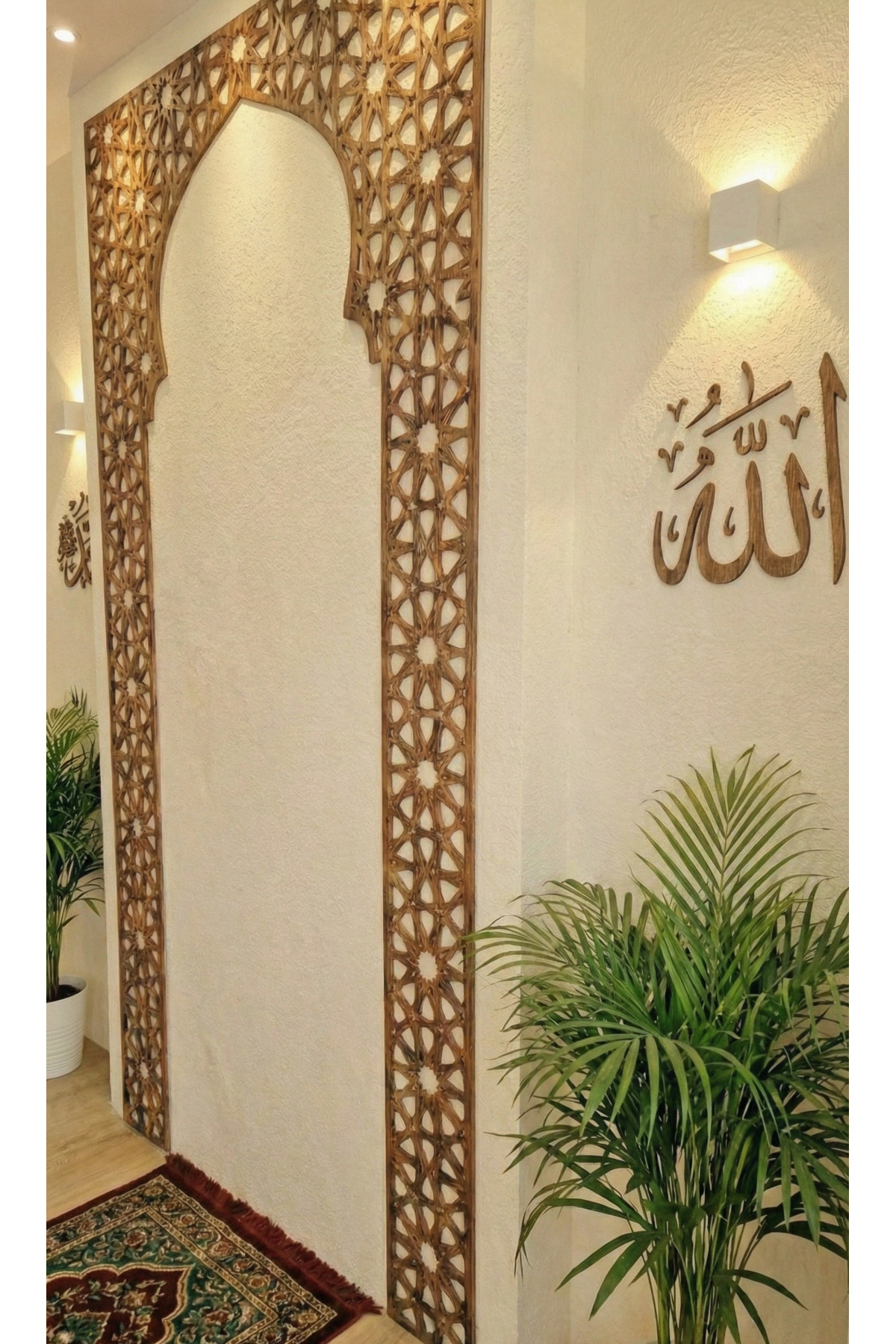 Evinizin en özel köşesini, ruhunuzu dinlendirecek bir ibadet alanına dönüştürün. Geleneksel İslam sanatının zarafetini modern ahşap işçiliğiyle buluşturan bu özel mihrap dekoru, evinizde bir cami huzuru estirecek. Detaylı geometrik desenleri ve Selçuklu sanatından ilham alan motifleriyle dikkat çeken bu büyük boy ahşap…
